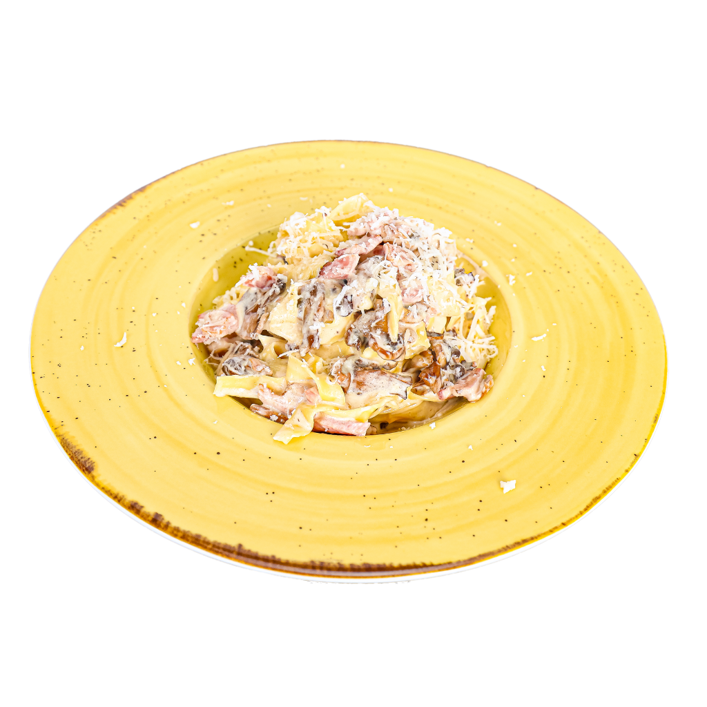 TAGLIATELLE BACON E COGUMELOS